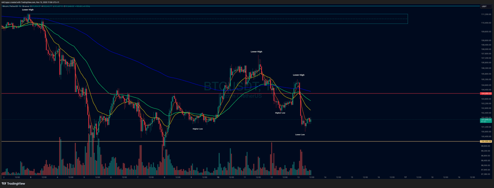 Waking up to another failed rally attempt, Bitcoin is under pressure again as bears step in and defend another key liquidation level. We are now approaching $100K for the fifth time in just over a week, and each attempt is making this support zone weaker.