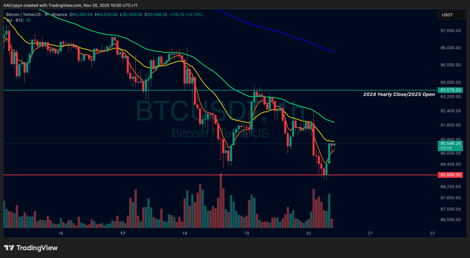 Bitcoin has not shared in the broader risk on rally. It once again retested the key level at $88,888 and once again it held. This is a constructive sign for the bulls and may offer short term support and a temporary bottom.