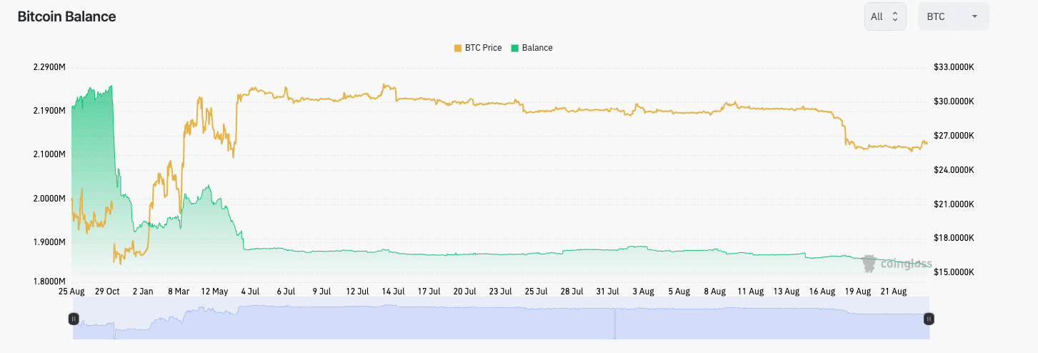 Look at the green line below. Less than 2 Million BTC is on exchange.