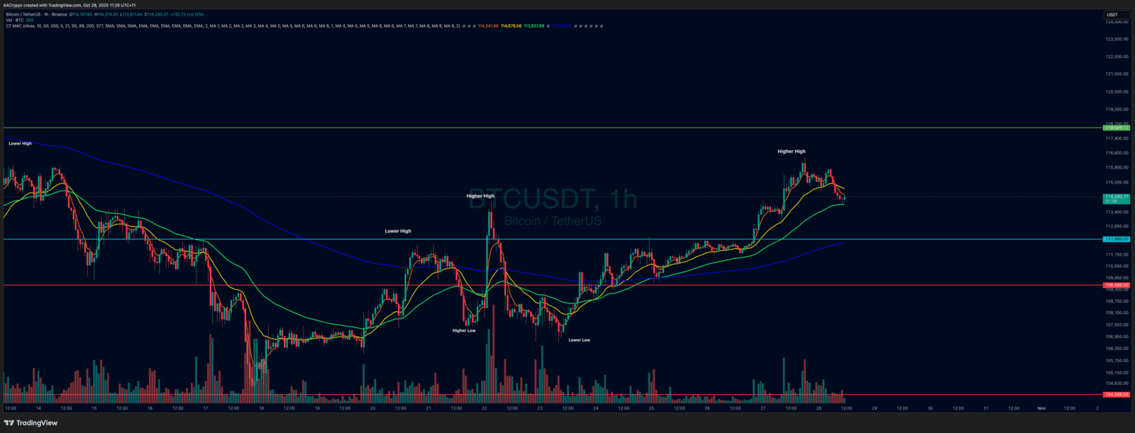 Sentiment continues to improve as geopolitical pressure appears to be easing. While in Malaysia, Trump announced a series of trade and critical minerals deals with four Southeast Asian countries. The most anticipated moment remains the upcoming meeting with President Xi, expected later this week. Markets are not expecting a finalised deal from it, but there is optimism around further progress, particularly with China continuing rare metal exports and the US holding off on 100% tariffs.