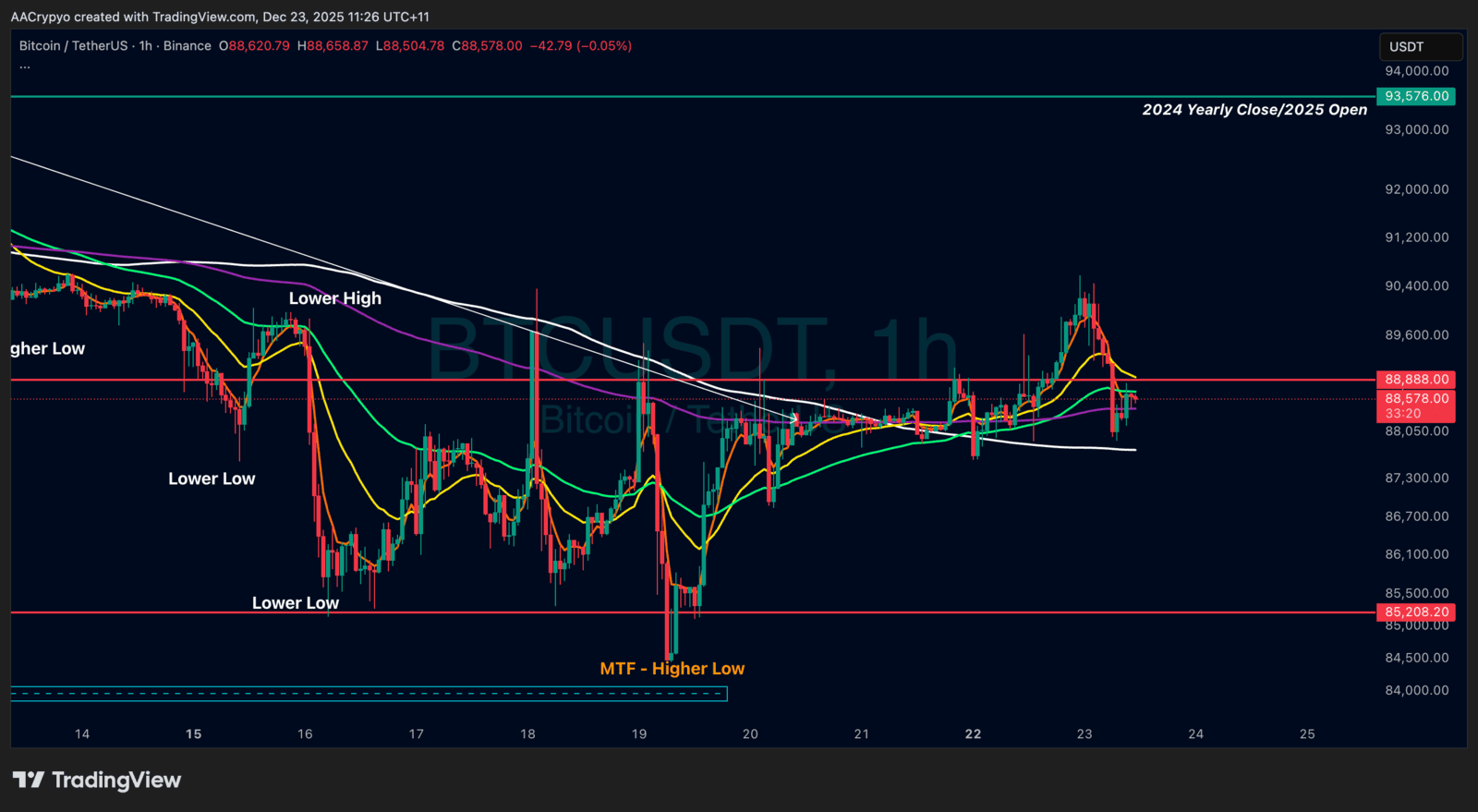As we enter the final stretch of the year and the Christmas and holiday period sets in, market volumes, liquidity and order book depth typically decrease. This has been clearly reflected in price action, but we may now be seeing signs of volatility returning. Bitcoin briefly reclaimed $90K yesterday, gaining over 2% intraday, but once again closed around $88K which has acted as a magnet for over a month.