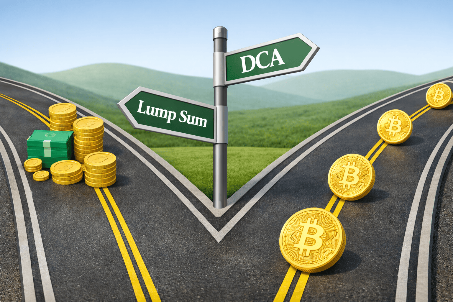 A lump sum investment is exactly what it sounds like. An investor deploys 100% of their capital at a chosen time and then rides out the position. This can be extremely rewarding if timed well. However, it requires conviction and discipline, especially if the purchase is made near a market peak, which in crypto can mean significant drawdowns.