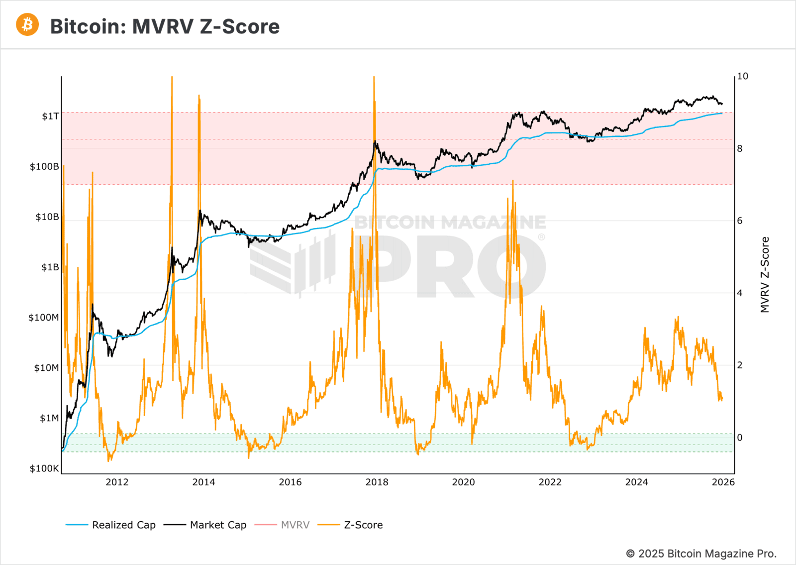 MVRV Z-Score is a chart that uses blockchain data to highlight when Bitcoin is significantly over or undervalued compared to its historical fair value.