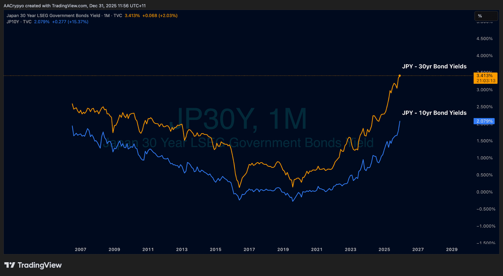 The main story in November was once again Japan. Last year, it was a surprise rate hike. This year, it was surging bond yields that triggered another potential unwind of the yen carry trade, with both the 10-year and 30-year yields hitting their highest levels since the turn of the century.